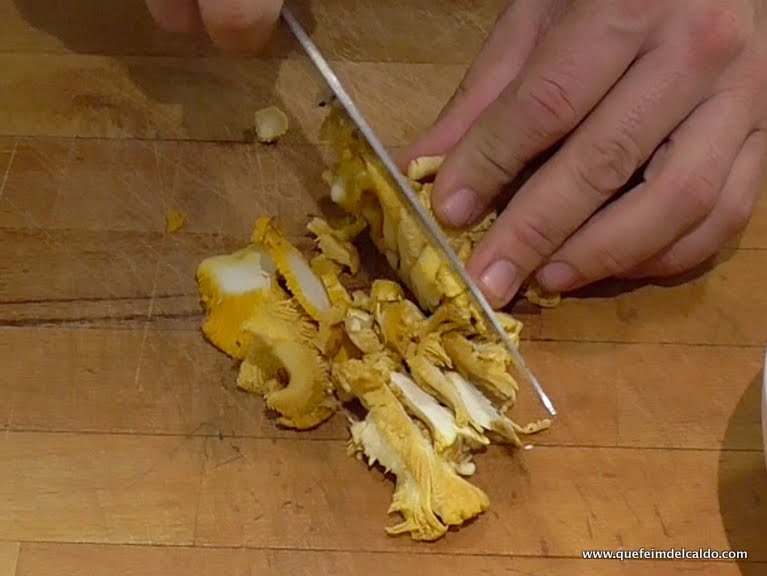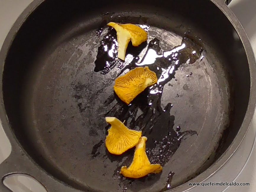 Mientras dejamos reposar dos minutos doramos unos picornells para acompañar el plato.