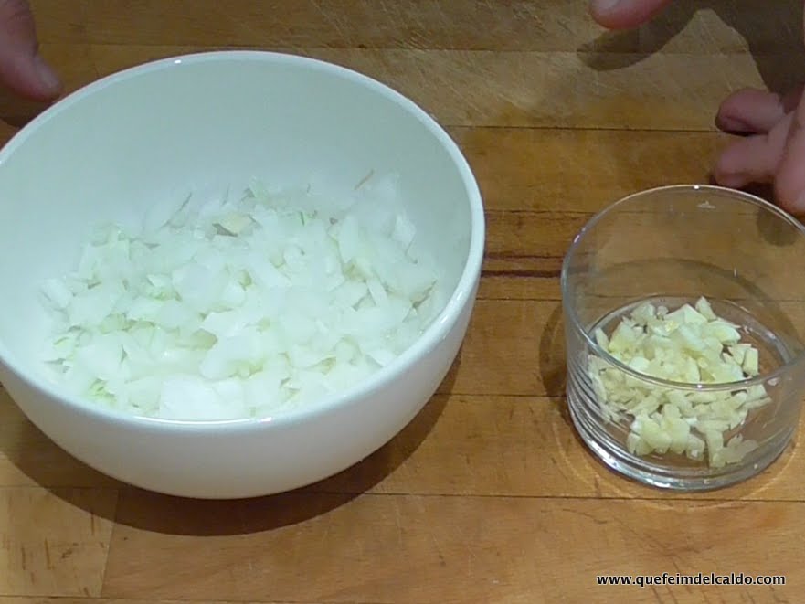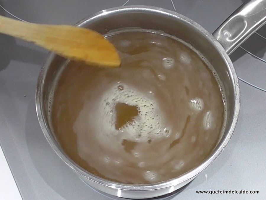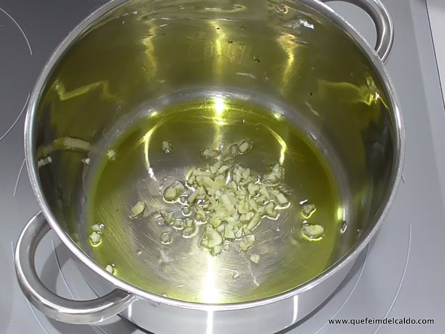 Calentamos el litro y medio de caldo, es muy importante que esté caliente el caldo a la hora de mojar el arroz.