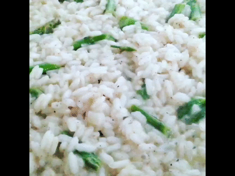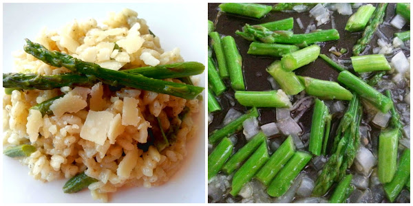 5. Servir con queso parmesano por encima y espárragos verdes.