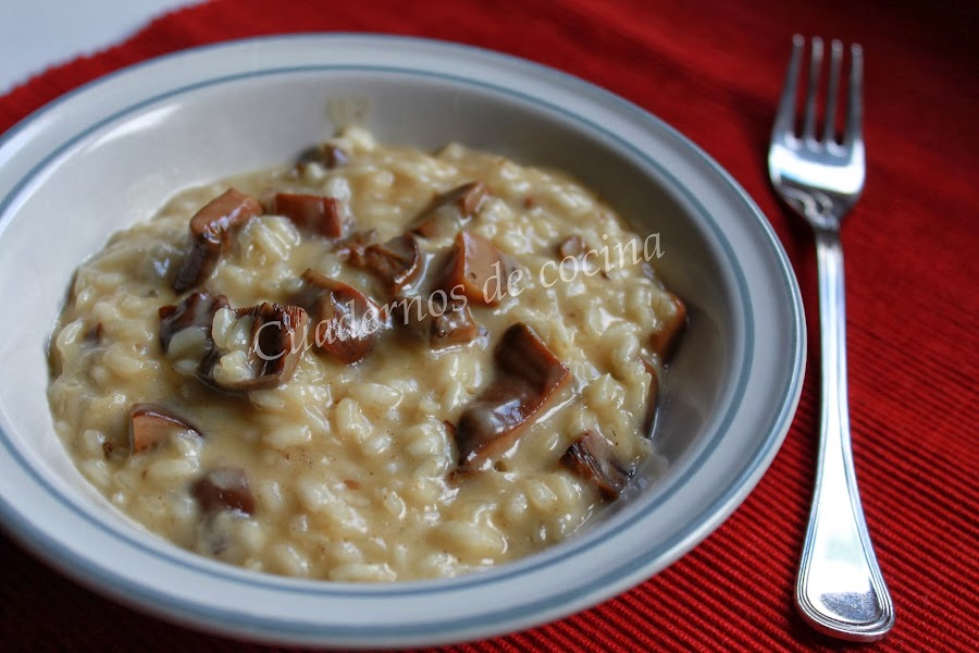 Pero hace unos días, Rosa, compañera de trabajo, me trajo una bolsa de níscalos recién cogidos. Me dio unas pautas para cocinarlos pero, además de guisarlos como me dijo (ya os traeré la receta), me apetecía hacer un risotto con ellos.