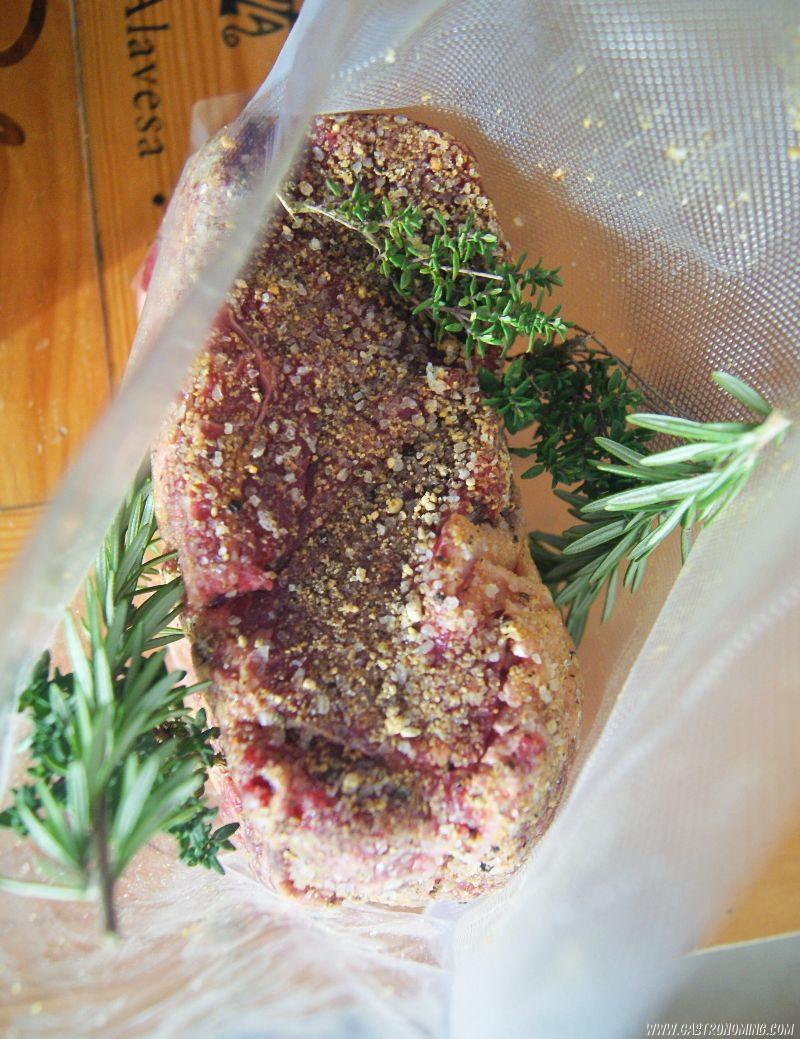 Lo bueno de sellar la carne antes de meterla al vacío es que daremos un punto de sabor por la reacción de Maillard, bueno, digamos que medio punta ya que es prácticamente inapreciable en el resultado final. El aspecto no es prioritario ahora ya que se va a perder durante la cocción al vacío, pero si vamos a eliminar los posibles patógenos que podría tener la carne ya que normalmente la mayoría se encuentran en la parte exterior de la carne y esto, sumado a la prolongada cocción, nos dará un extra de seguridad para eliminar bacterias.Si no tienes romero fresco, usa 1/2 cucharada de romero seco, si te pasa lo mismo con el tomillo fresco, usa 1 cucharada de tomillo seco, si lo que te falta es ajo en polvo, puedes usar 4 dientes picados y si lo que no tienes es mostaza en polvo, usa 2 cucharadas de Salsa de mostaza y lo que debes hacer si te falta tantas especias y pasarte por todoespecias.com nuestro proveedor oficial de especias que seguro que tiene todas las especias que te faltan.
