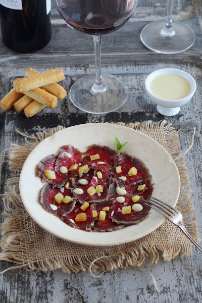 NOTAS: yo preparo la carne con antelación ya sellada y la congelo. Cuando la vamos a degustar, la retiro 20 minutos antes del congelador y cuando está semidescongelada la corto y la dejo entre papel absorbente tapada en el frigorífico hasta el momento de comer.