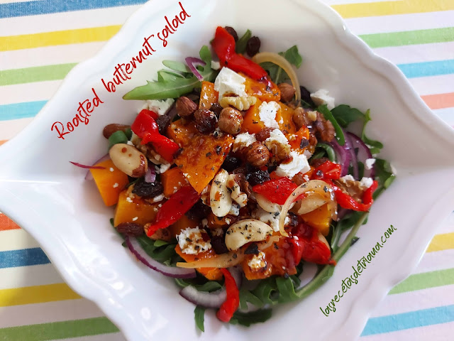 9.- Añadimos el queso feta sobre las verduras, los frutos secos y las pasas.