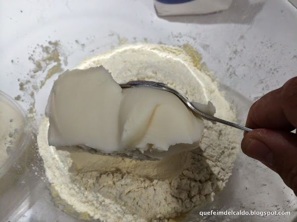 Ahora incorporamos la manteca de cerdo ablandada.