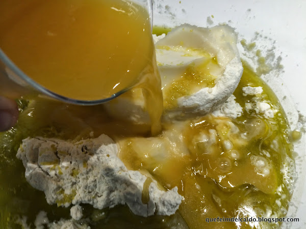 Incorporamos los 300 ml de zumo de naranja.