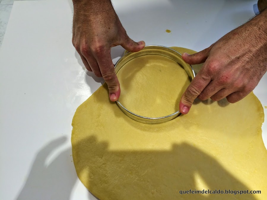 Transcurrido el tiempo colocamos la masa sobre la mesa de trabajo, extendemos con el rodillo hasta que quede más o menos de medio centímetro de grosor.
