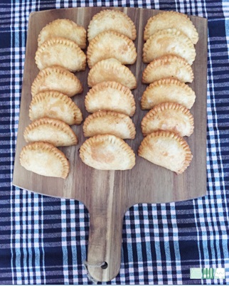 Estirar pequeñas bolitas como hacemos con los robiols tradicionales que publique en este enlace, ponemos una cucharada de nuestro preparado de flan, doblamos formando la media luna y sellamos con el tenedor.
