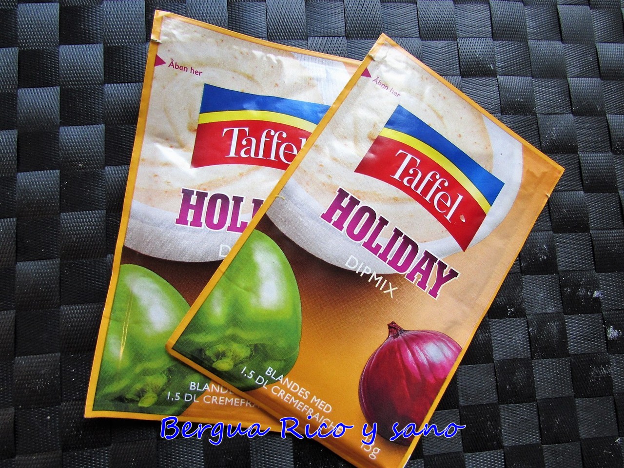 El ingrediente secreto de esta receta es sopa de cebolla en polvo, te lo chivo ;) Aquí en Dinamarca no es un artículo común; me hablaron de una tienda alemana que tenía, pero no les que quedaba, no sabían cuándo iban a traer... Total, que acabé usando unos polvos de cebolla y pimiento que se usan para preparar salsas de crème fraîche para las patatas fritas de bolsa (patatis, en mi tierra). Si tú también tienes problemas para encontrar sopa en polvo, como recurso alternativo también serviría la cebolla en polvo que venden como especia, aunque no es lo mismo.
