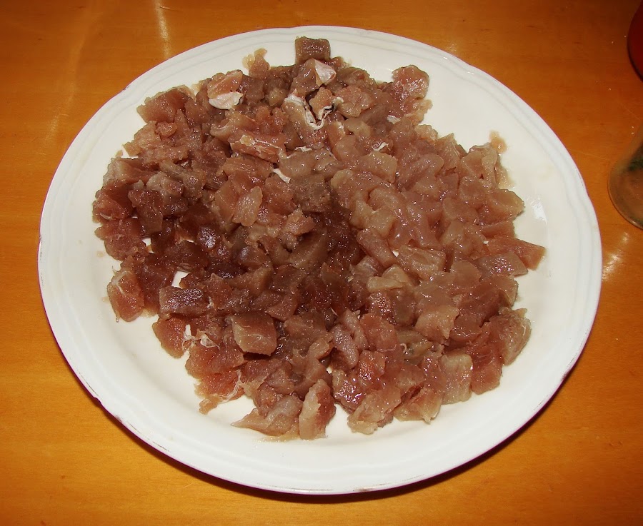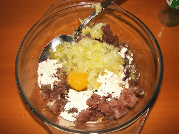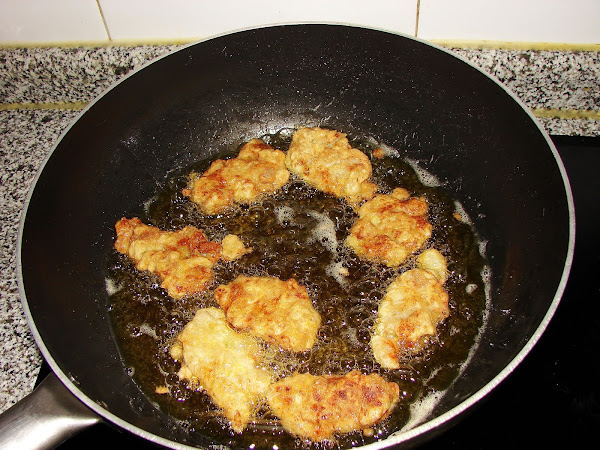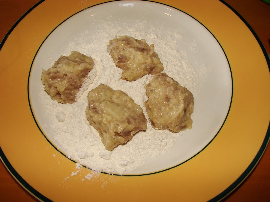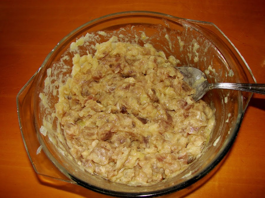Se sofríe la cebolla con el ajo en tres cucharadas de aceite. Posteriormente, se mezcla el atún, la cebolla sofrita, un huevo crudo, una pizca de pimienta y dos cucharadas de harina.