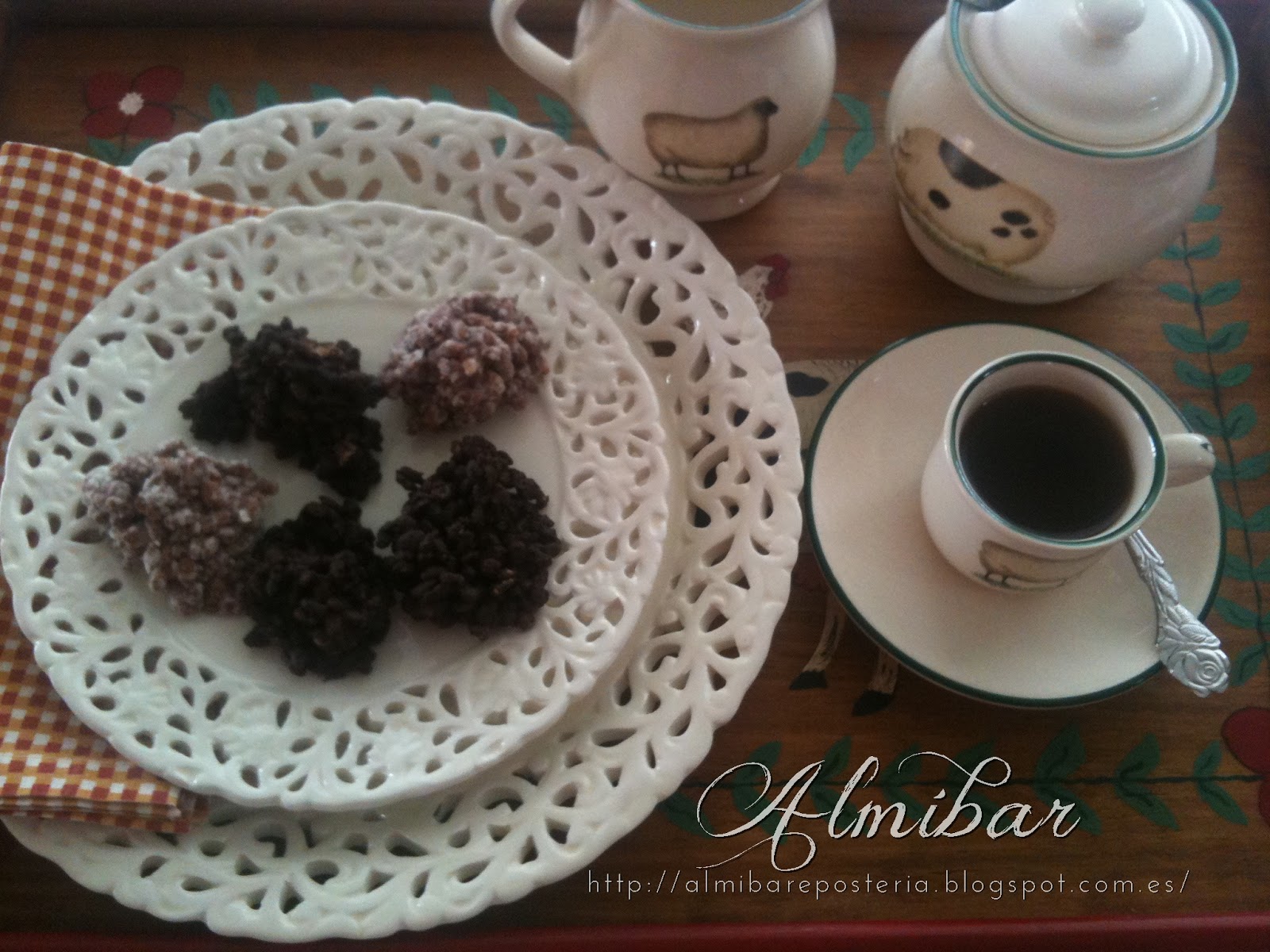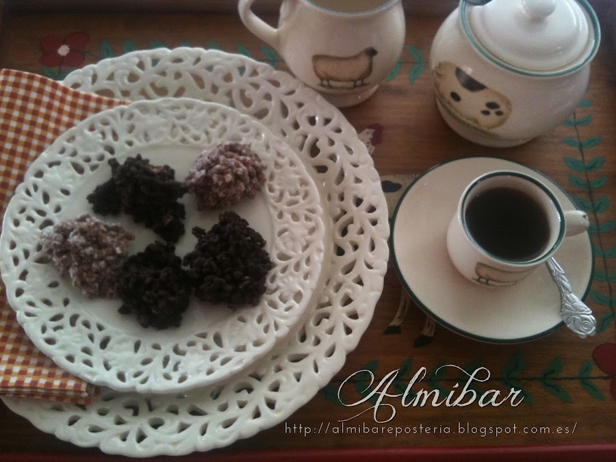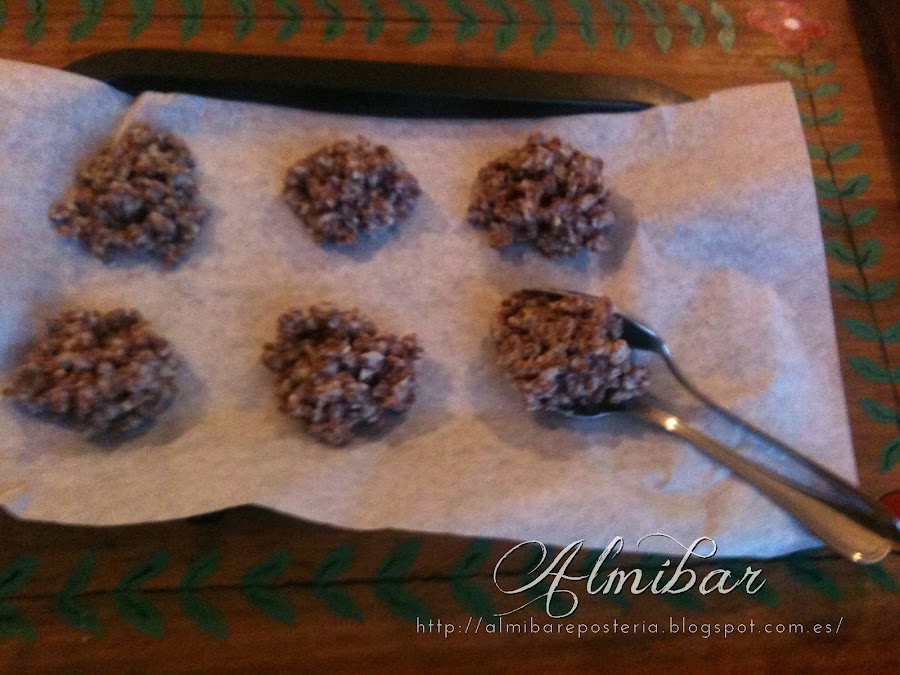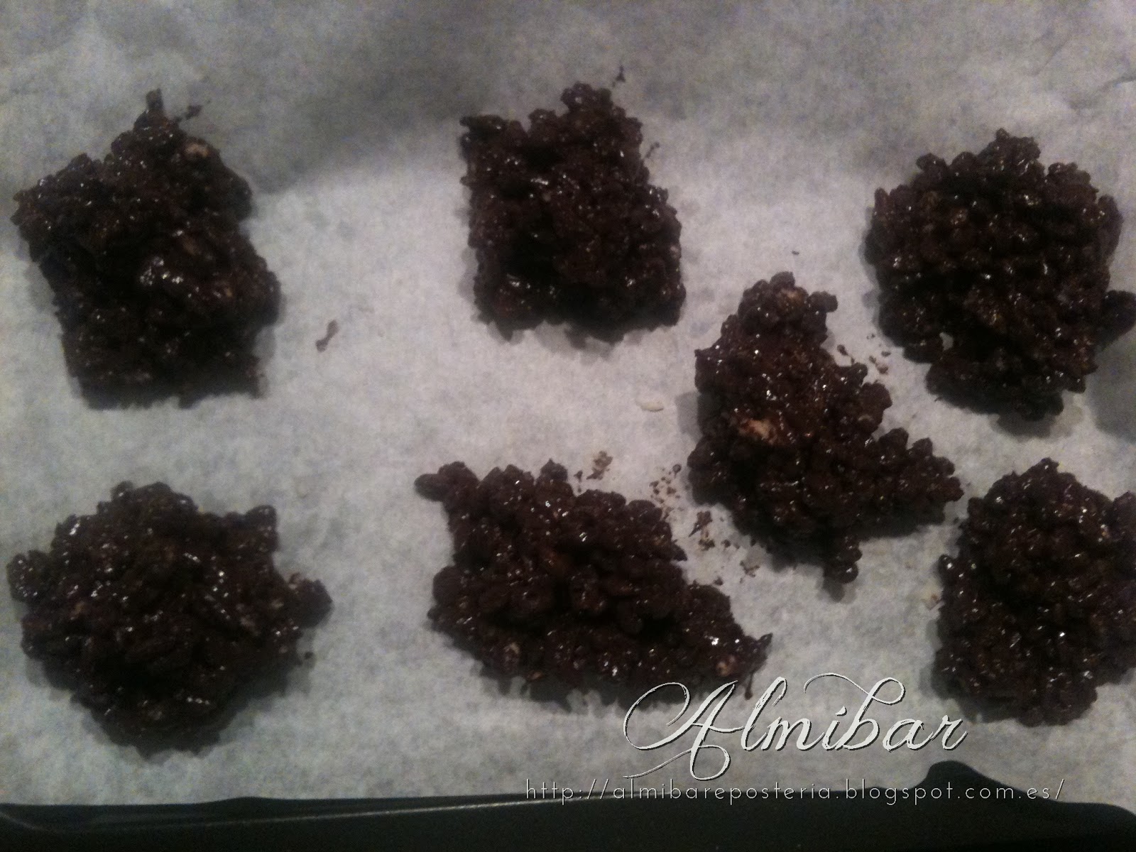 ...si derrites un poco de chocolate blanco y lo pones por encima de la mitad de cada roca, queda ideal de aspecto y de sabor delicioso, pruébalo!!!