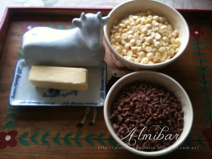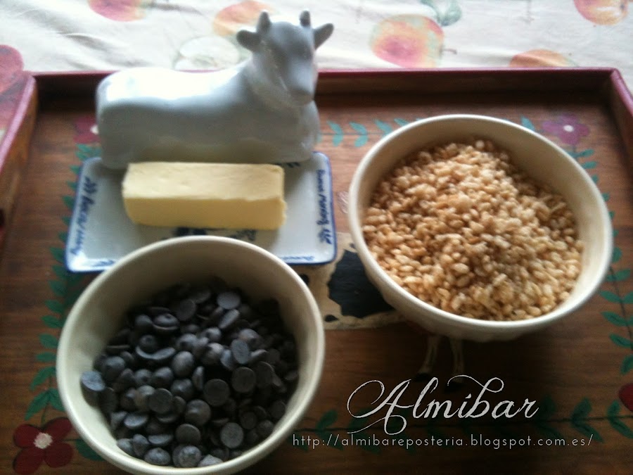 ...la vas a preparar con dos tipos de chocolate y dos tipos de arroz inflado diferentes...