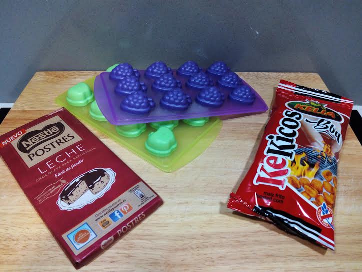 Moldes de silicona (si quereis prepararlos en formato bombón)Derretimos el chocolate en el microondas o al baño maría y picamos los kicos en trocitos no demasiado finos. Mezclamos todo y con ayuda de una cuchara vamos haciendo montoncitos sobre papel sulfurizado. Si optáis por hacerlo en formato bombón, deberéis rellenar los moldes y una vez listo darles un golpes para quitar cualquier burbuja de aire.