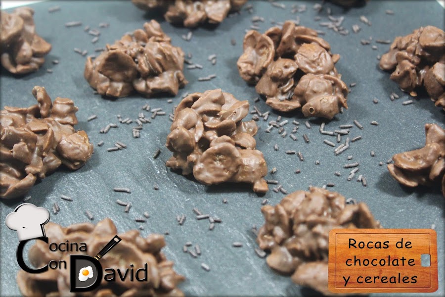 Hoy haremos Rocas de chocolate y cereales. Receta chocolateada de las que gustan a todo el mundo o a casi todo, sencilla y fácil de preparar.