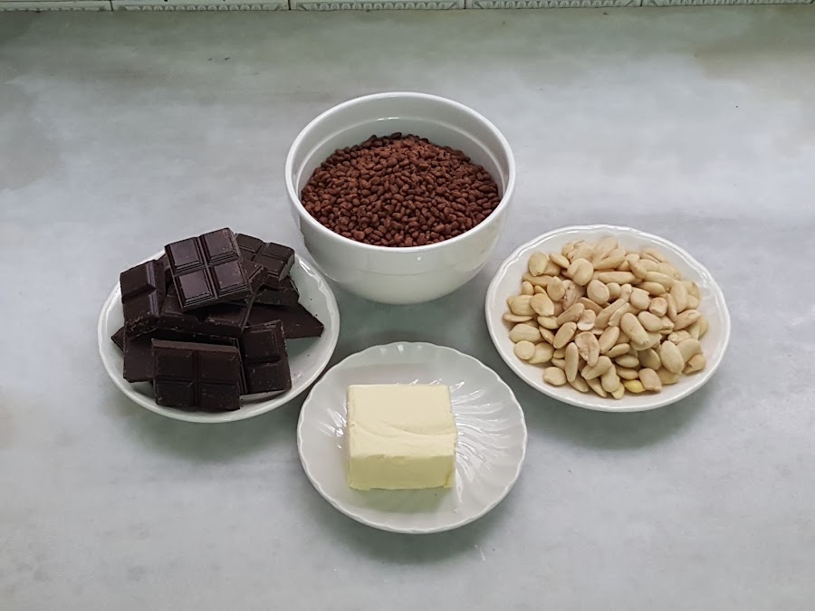 En aquella ocasión utilicé copos de maíz, los cereales del desayuno, pero ahora la he hecho con almendras y arroz inflado.