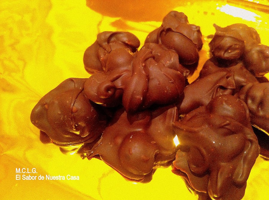 Incorpora las avellanas al chocolate y mezcla hasta que estén envueltas totalmente en él.