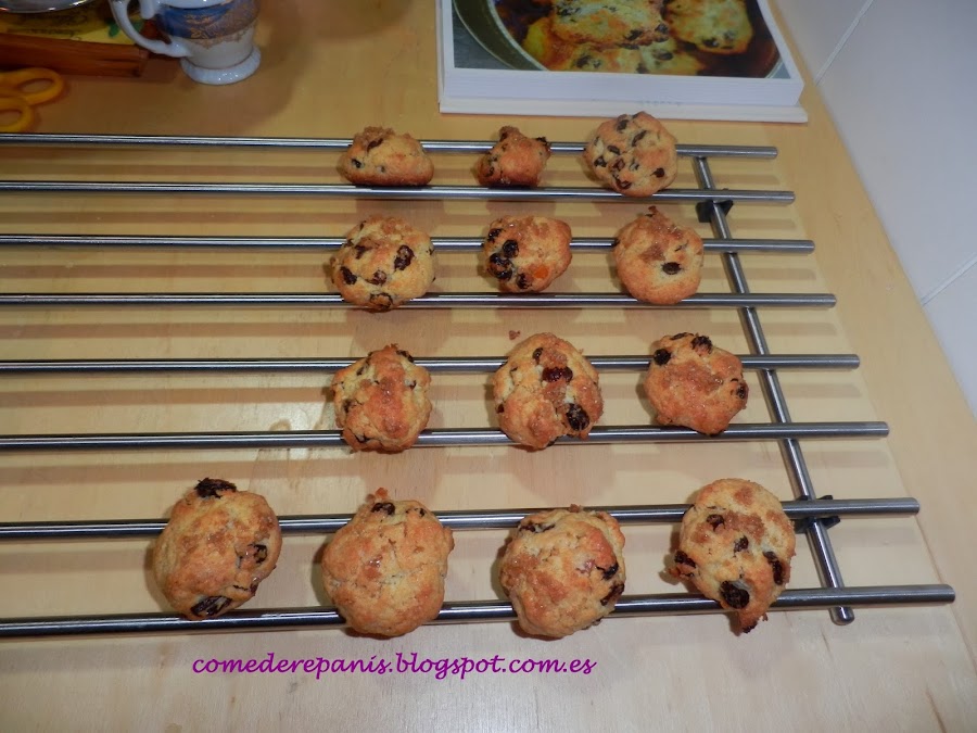 Esta receta la he sacado del famoso libro de Marian Keyes, Salvada por los pasteles. Lo reconozco este libro me ha embrujado, siento que debo preparar todas y cada una de sus recetas, todas me gustan, pero claro, soy muy metódica y comencé con la primera las Rock cakes y ahora ese es el problema, no puedo parar de hacerlas, las hago incluso dos veces por semana.