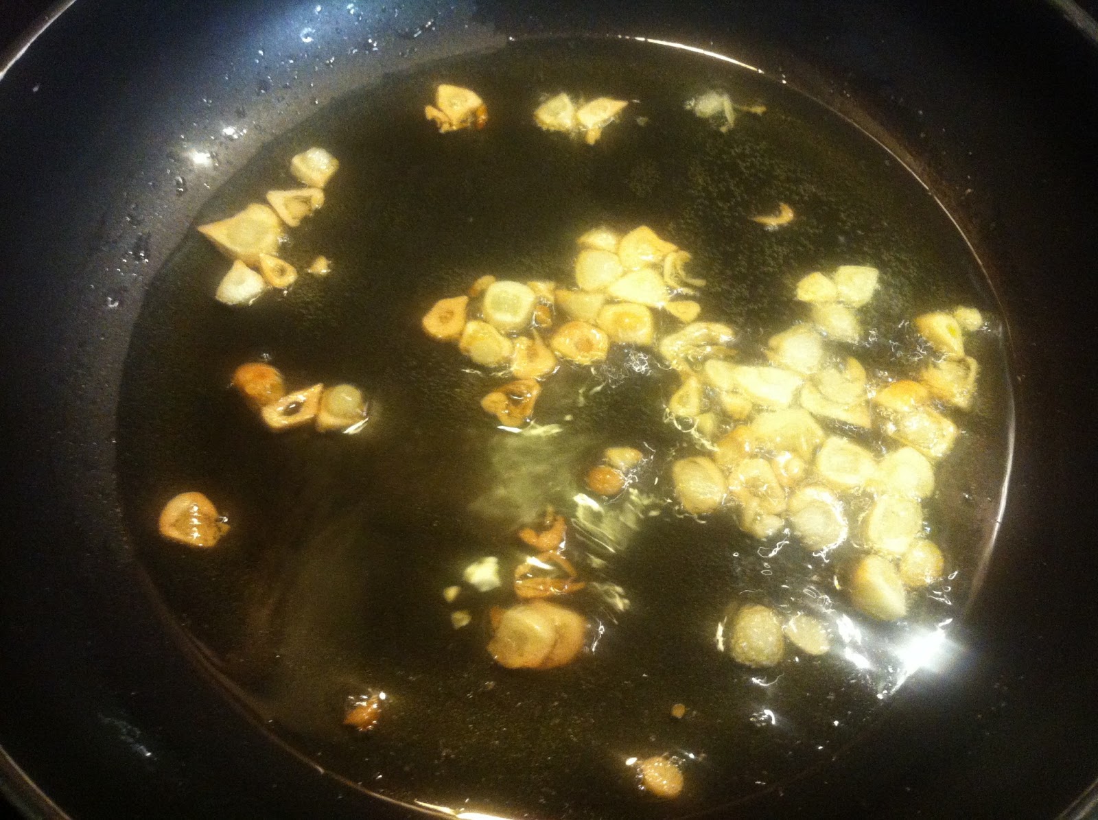 Ahora, haremos el refrito. Para ello, ponemos en una sartén 8 cucharadas de aceite y echamos los 6 dientes de ajo cortados en láminas, cuando empiecen a dorarse, echar el vinagre (cuidado que salta) y añadir el caldo que hay en la fuente del rodaballo (los jugos del pescado y la sidra) y mover un poco la sartén en el fuego con movimientos circulares para que ligue la salsa y echar un poco del refrito por encima de cada lomo que tenemos ya preparado en el plato.