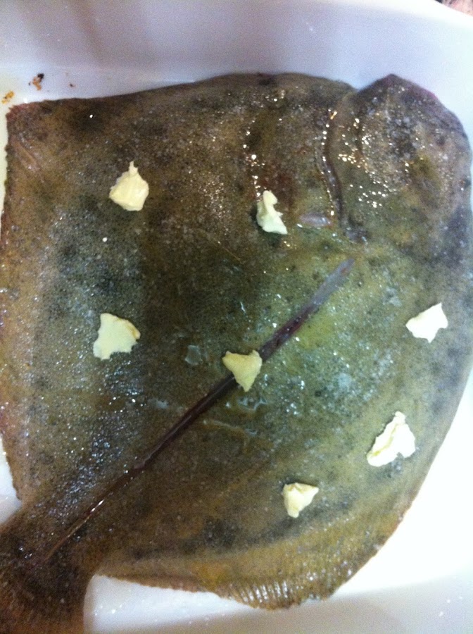 Decidle al pescater@ que os prepare el rodaballo para hacerlo al horno (le quita las tripas, y le hace un corte en el centro).