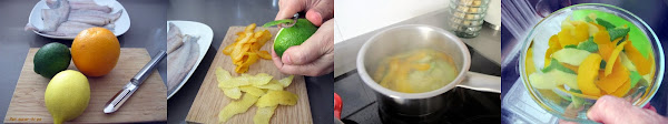 Lavar y pelar los cítricos: naranja, lima y limón. La piel tiene que quedar fina, evitando la parte blanca.