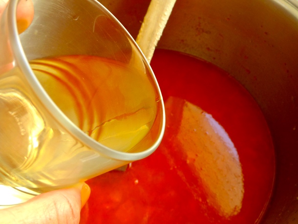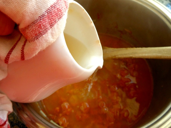 Transcurrido el tiempo vierte el medio vaso de vino blanco seco y deja que el caldo hierva durante 10-12 minutos a temperatura media-alta, nº 8 de la placa vitrocerámica y con la cacerola destapada.