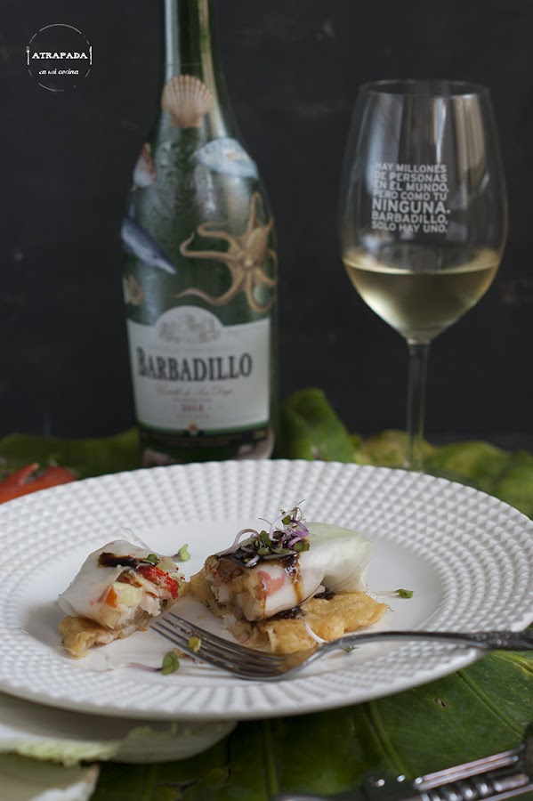 Desde Bodegas Barbadillo han querido celebrar a lo grande el 40 aniversario del vino blanco más vendido, el Castillo de San Diego. Para ello han puesto en marchar un concurso para bloggers donde tenemos que dar en el blanco con una receta que maride con su vino más preciado. Ellos llevan #40AñosDandoenelBlanco y yo no se si voy a dar en el blanco con la receta que he preparado. Para mi le va genial al vino, y lleva un punto de las tierras gaditanas con la tortillita de gambas (típicas son sus tortillitas de camarones) y un toque oriental con estos rollitos de papel de arroz rellenos de bogavante, col china y pepino, con una reducción de salsa de soja que viene a decantar la balanza más por el toque oriental que por el gaditano, de donde viene nuestro vino.