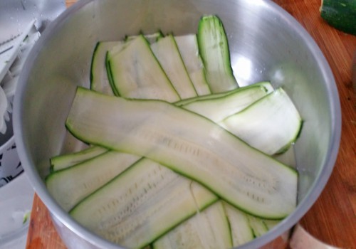 Empezaremos por hacer las tiras de calabacín con una mandolina.
