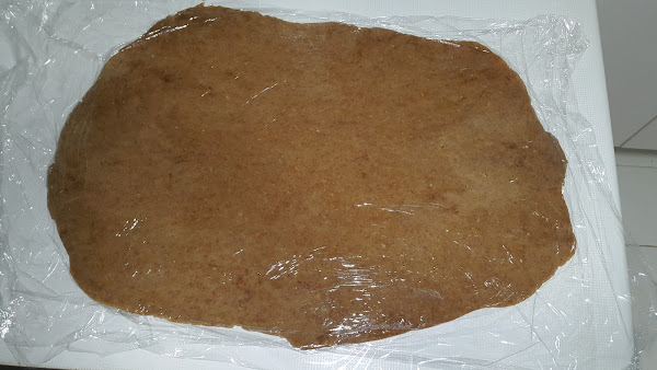 Ponemos otro trozo de papel film y, con la ayuda de un rodillo o similar, extendemos la masa entre los dos papeles quedando lo más estirada posible.
