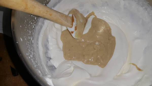 Para terminar con la crema mezclamos las 2 partes con movimientos envolventes para que no se baje la nata (crema de leche).