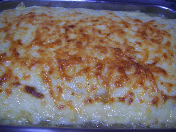 Cubrimos con el resto de la bechamel y el queso rallado e introducimos en el horno a 180º hasta que el queso se gratine y listo para servir. Buen Provecho.