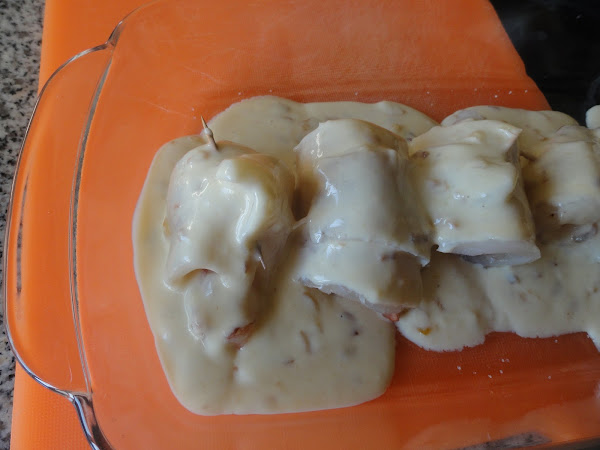 Los sellamos en una sartén en un poco de aceite y colocamos en una fuente de horno. Ponemos por encima la salsa y ponemos al horno previamente calentado a 180º unos diez minutos. Depende del grosor de los filetes, que no nos pasemos y que tampoco quede crudo. Lo de pasarlos antes por aceite es para que no suelten mucha agua en el horno cuando los tenemos con la salsa. Para no aguarla. También podemos terminarlos en la sartén a fuego muy suave.