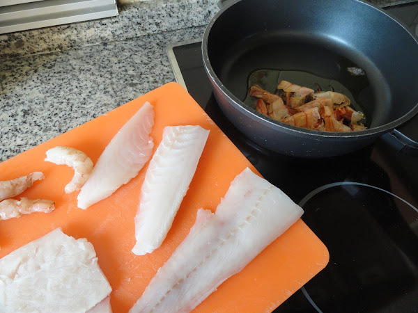 Un rulito de pescado muy resultón para estas fiestas. Yo los he preparado con rosada, pero se puede preparar con cualquier filete de pescado fino, que pueda envolver bien el gambón, o puede ser un langostino o gamba.