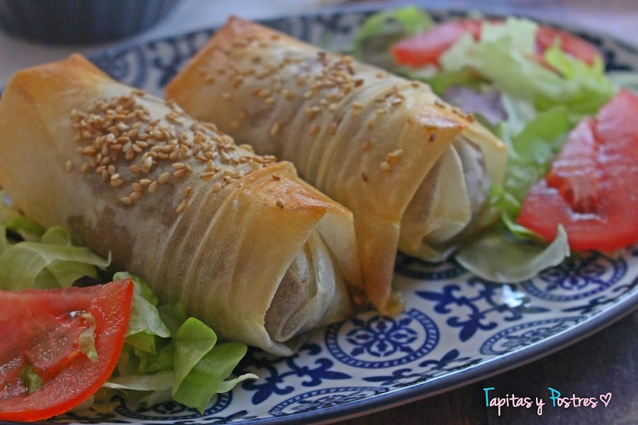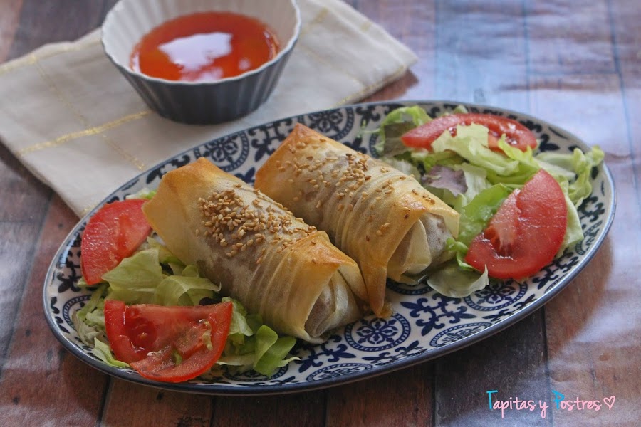 Bueno, eso espero porque en mi casa ha gustado mucho. Tanto como aperitivo o como segundo plato...es una combinación tan rica que con un rollito solo me ha parecido poco.