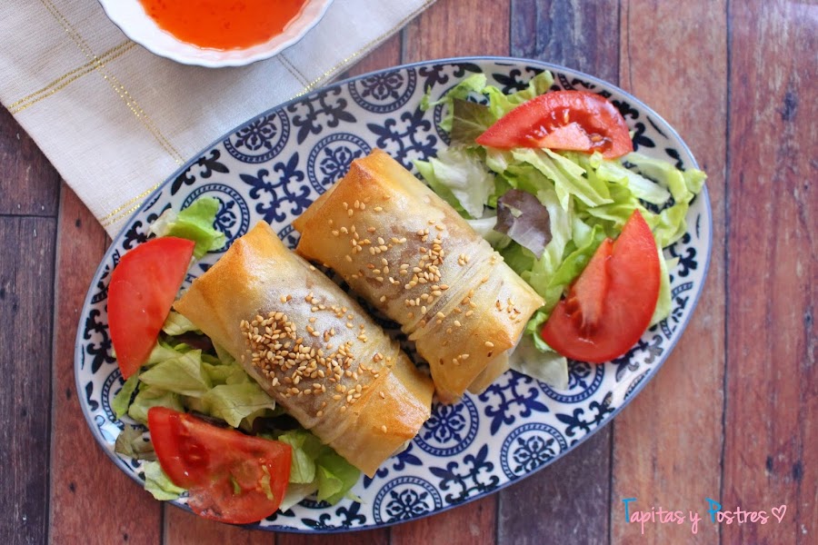 Para acompañarlos, he puesto salsa chili dulce. Le va genial