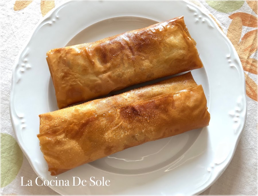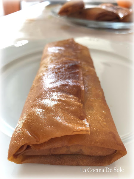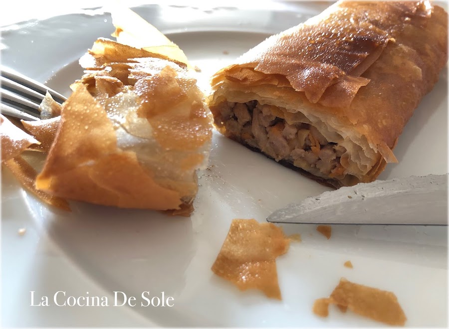 Ahora cogemos una lámina de pasta filo y hacemos los paquetes.