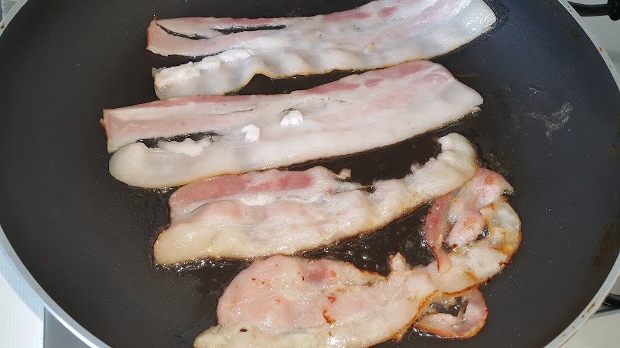 Tostamos el bacon. Es mejor no poner aceite en la sartén ya que el bacon al calentarse soltará su grasa.