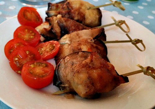 A vueltas del verano he tenido fácil la elección de la receta: algo simple y que solucione un entrante o casi casi, una cena. La gracia de estos langostinos envueltos en berenjena es que, si los escondes bien, la gente se suele llevar sorpresa y es muy original.