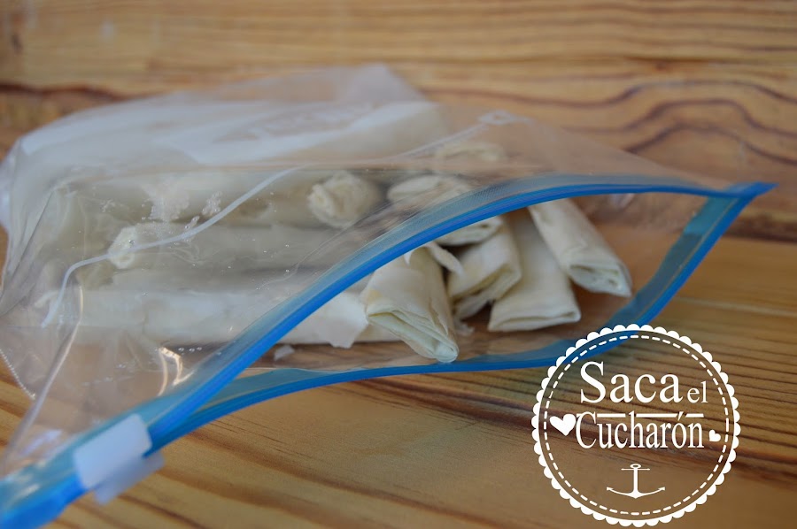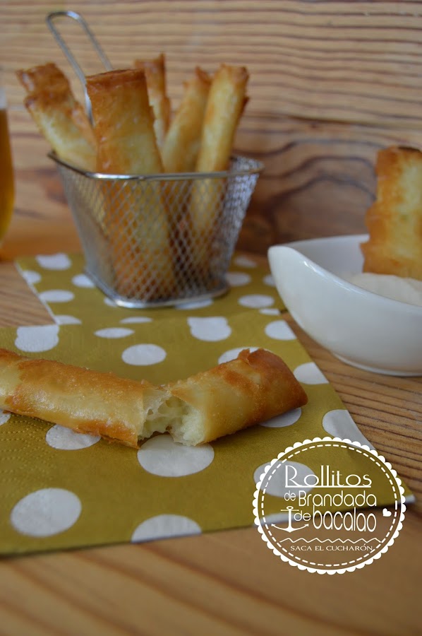Freímos nuestro rollitos en abundante aceite caliente hasta que estén dorados, dejamos escurrir sobre papel absorbente y los servimos acompañados de salsa alioli.