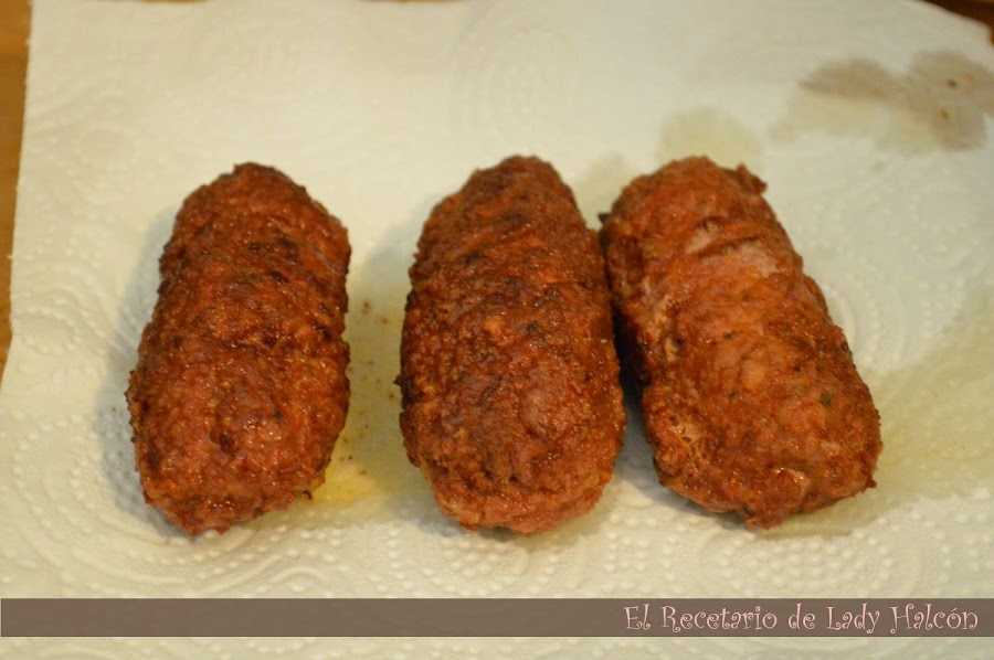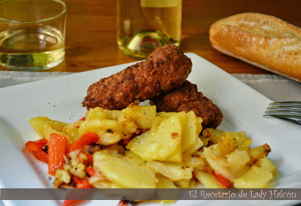 A nosotros nos recordaron a los kebabs hindúes, aunque no quedan tan secos por que la carne no está tan prensada y las especias son bastante suaves. Además, el sabor predominante es el pimentón, que lo diferencia del kebab hindú, pero os podéis imaginar lo ricos que están acompañados de unas patatas con pimientos y un rico vinito... Deliciosos es poco.