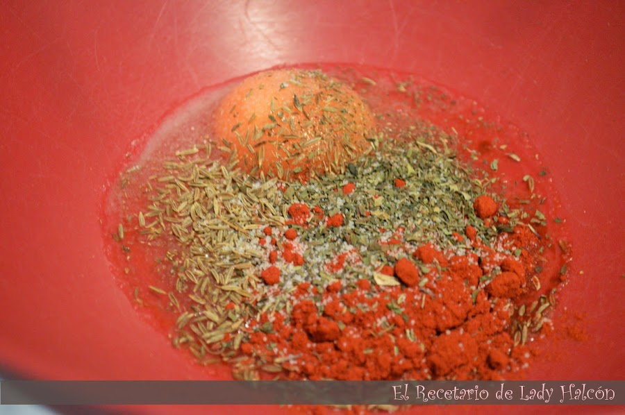 En un bol añade el huevo, la sal y todas especias y mézclalo un poco.