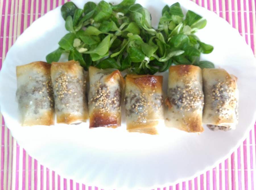 Corta la pasta brick en tiras y enrolla cada cilindro.