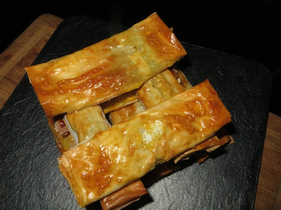 Estiráis la masa de pasta brick, si es redonda la cortamos para que nos salga un cuadrado y a su vez la cortamos para que nos salga dos rectángulos. Si es cuadrada, simplemente hay que cortarla por la mitad.
