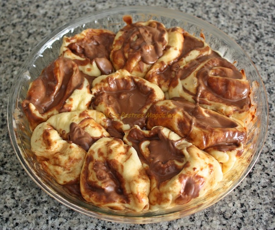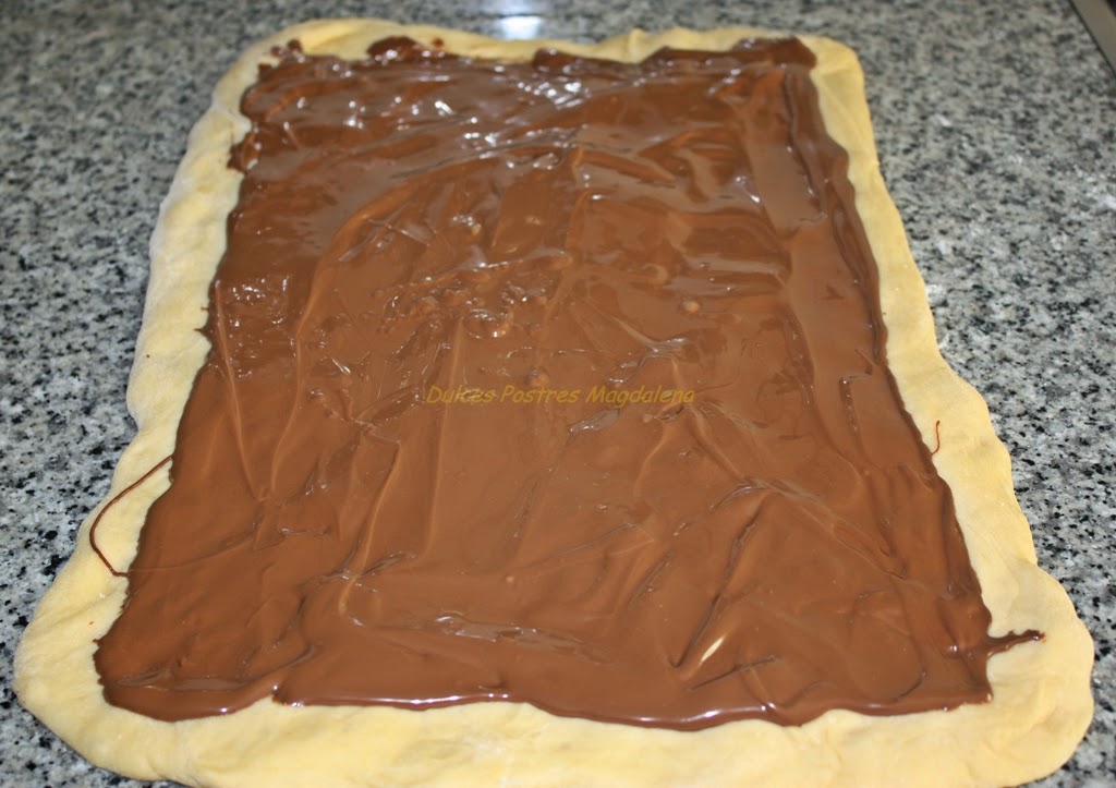 En cambio la masa, me ha enamorado, está súper súper buena, así que decidí, hacer la misma masa, pero cambiando el relleno, en este caso por sucedáneo de chocolate con leche.