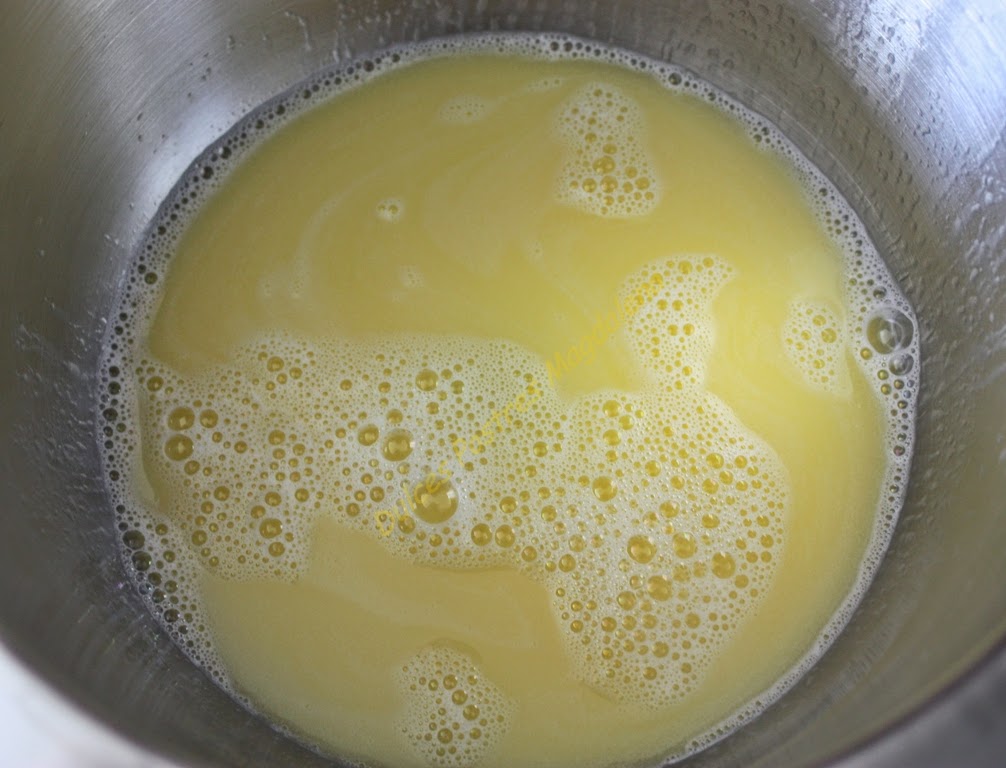 En un cazo poner la leche, la mantequilla, el azúcar blanco, la sal y llevar al fuego hasta que se deshaga la mantequilla, sin que rompa a hervir.
