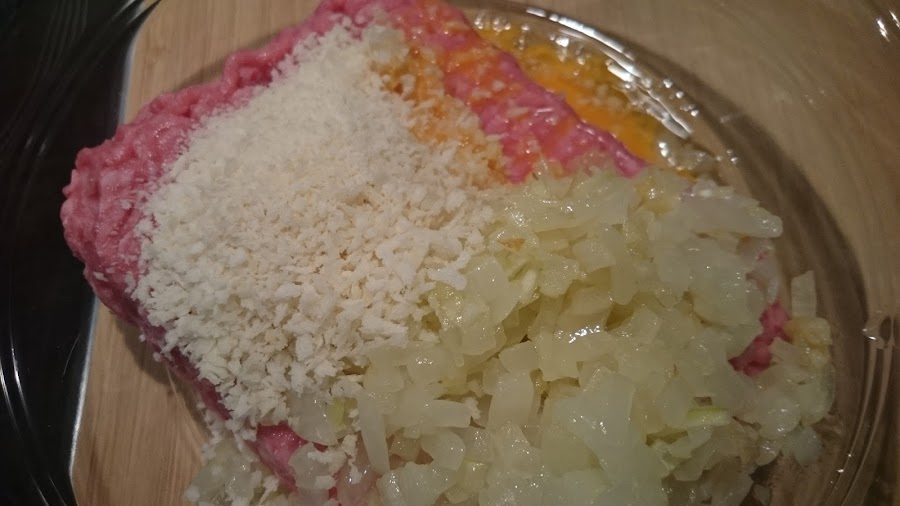 12 Hojas de col, 1/2 cebolla grande, 2 litros de agua, 450 grs de carne picada (cerdo y ternera), 20 grs de Panko (pan rallado japonés), 2 cdas de leche, 1 cda de nuez moscada, 1 diente de ajo picado, 2 hojas de Laurel, 1 bote de tomate troceado (o de tomate entero), 1 taza (240 grs) de Caldo de Pollo o Verduras, Vinagre de vino blanco, 1 cda de mantequilla, Aceite de oliva,