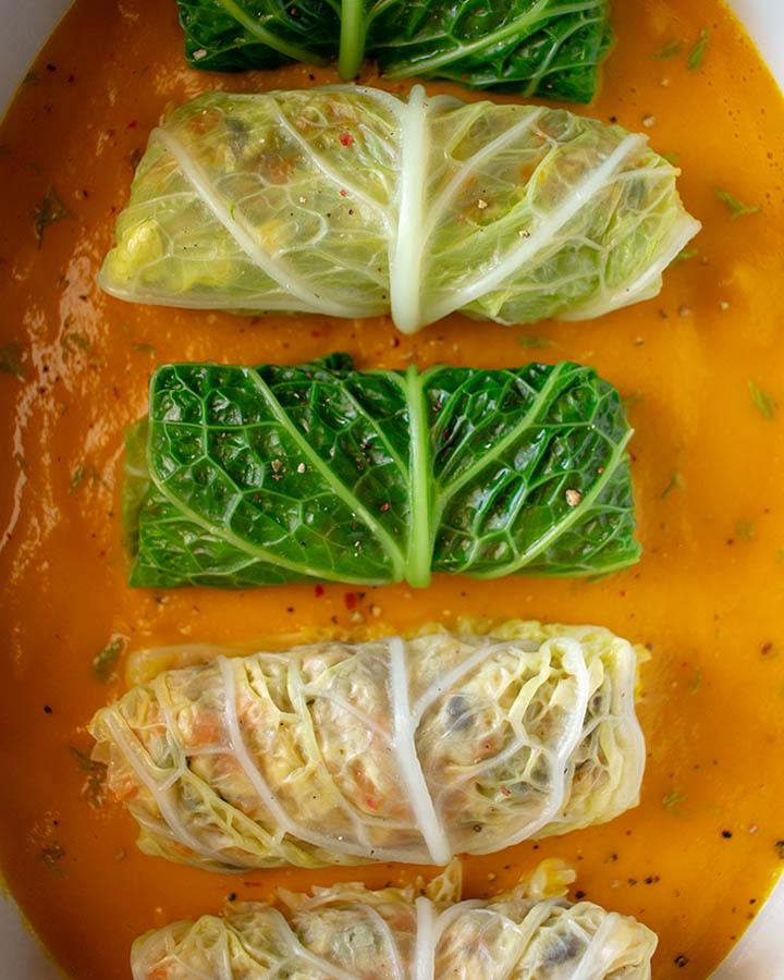 Rollitos de Col Rellenos de Setas, una deliciosa versión vegana de un clásico que tiene versiones por todo el mundo.