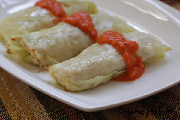 Hace unos días vi en un programa de televisión como se preparaban unos rollitos rellenos de carne picada y arroz y envueltos en unas hojas de col.
