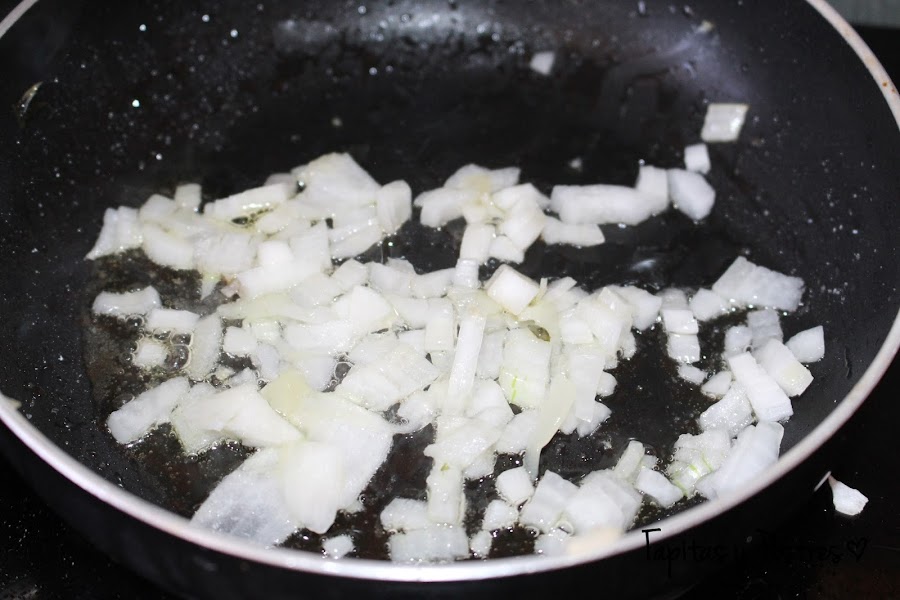 Ahora vamos con la salsa de tomate. Pochamos la cebolla.