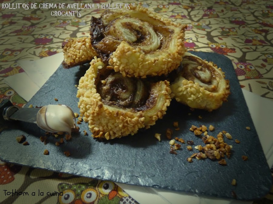 Ese es el caso de la receta que os traigo hoy, porque ¿quien no ha hecho los típicos rollitos de hojaldre con crema de chocolate? yo creo que los hemos hecho en infinidad de veces como vosotras. Pero nunca se me había ocurrido rebozar el hojaldre en crocanti de almendra antes de hornearlos.