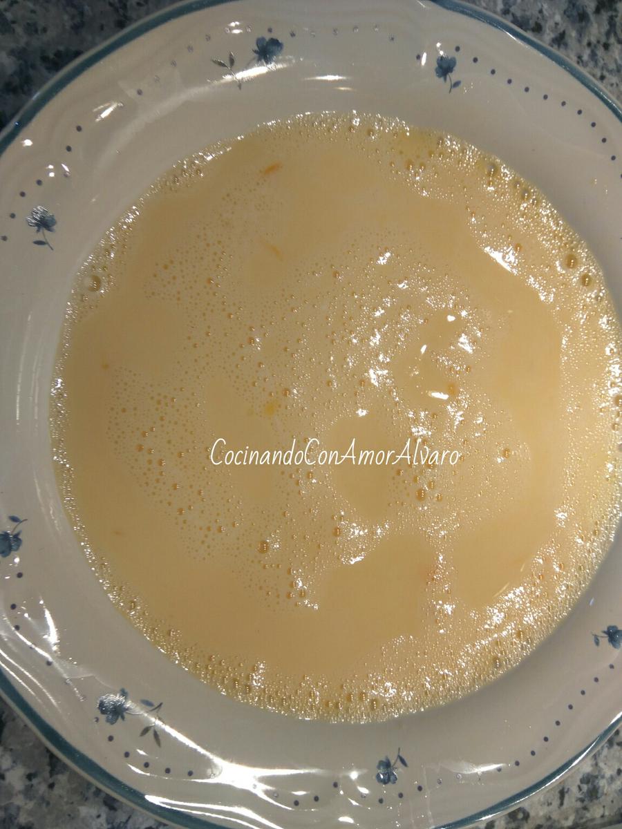 Batimos los huevos batidos, y echamos un chorro de leche. Mezclamos bien.