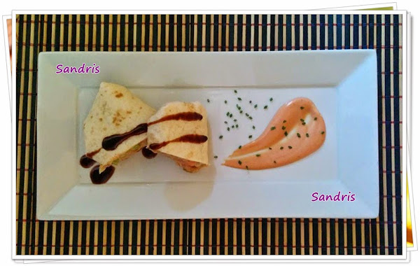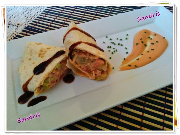Y nada más, se ponen los ingredientes en el centro de la tortita de pan, se enrolla, se emplata y listo!!! :-) Más fácil y más sencillo... imposible y encima bien rico!!! :-)